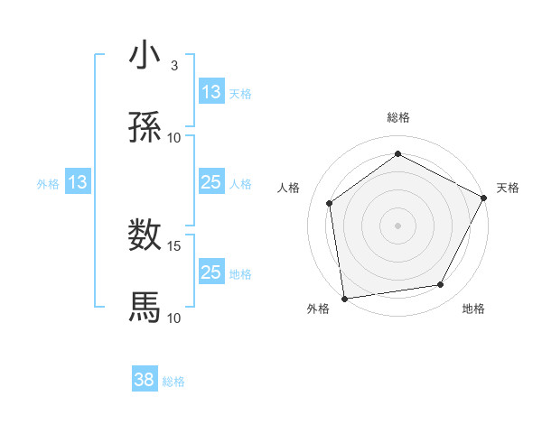 小孫 数馬さんの総格は38画の4点!