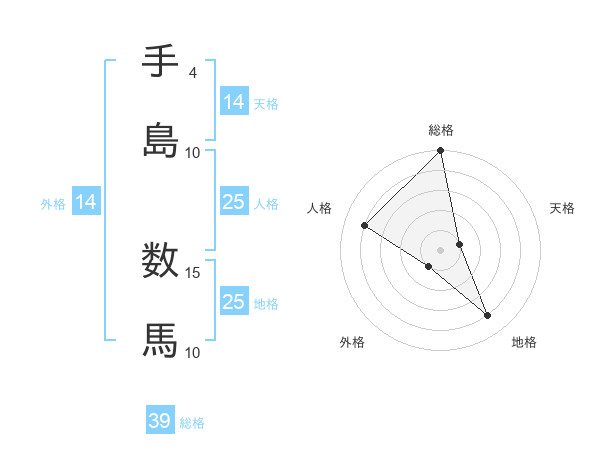 手島 数馬さんの総格は39画の5点!