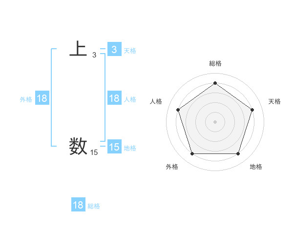 上 数さんの総格は18画の4点!