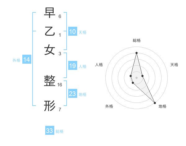 早乙女 整形さんを姓名の画数から五運を鑑定