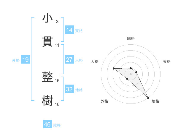 小貫 整樹さんを姓名の画数から五運を鑑定