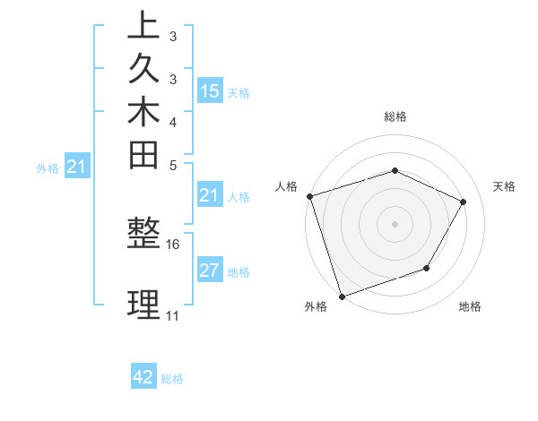 上久木田 整理さんを姓名の画数から五運を鑑定