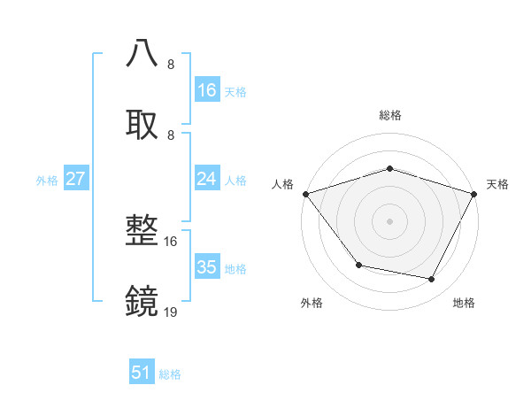 八取 整鏡さんを姓名の画数から五運を鑑定