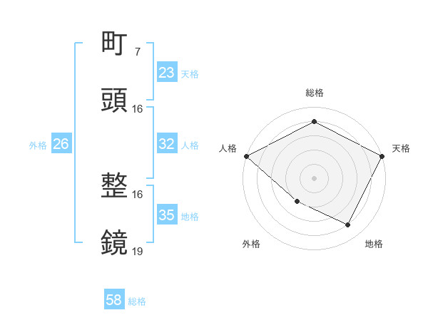 町頭 整鏡さんの総格は58画の4点!