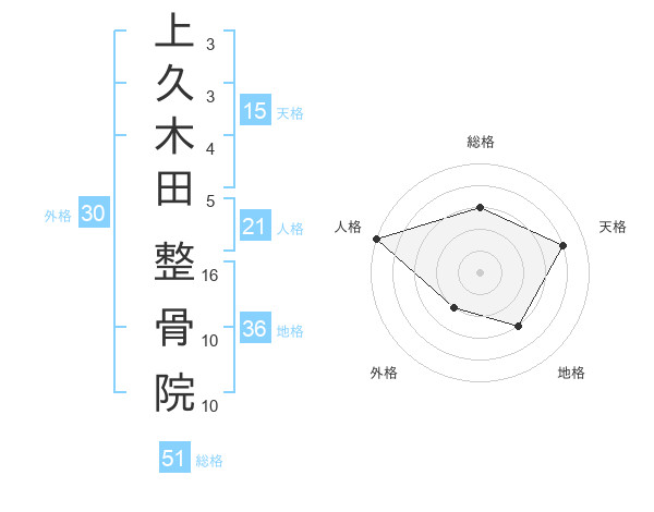 上久木田 整骨院さんの総格は51画の3点!