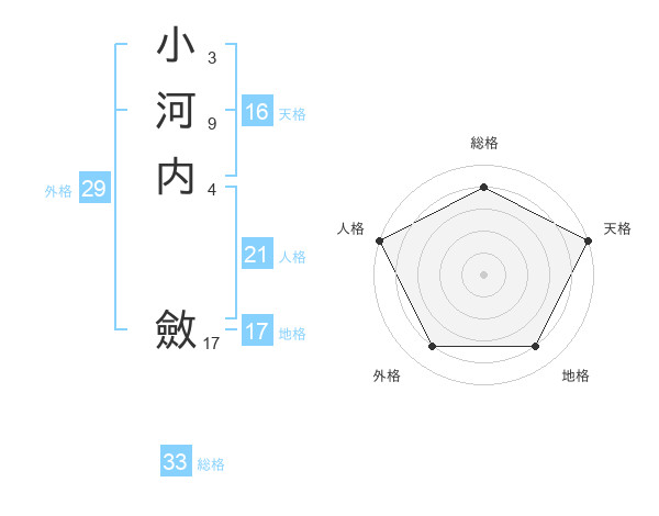 小河内 斂さんの総格は33画の4点!