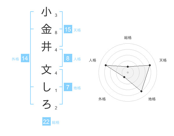 小金井 文しろさんの総格は22画の1点