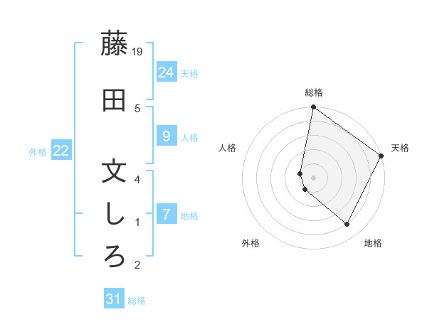 藤田 文しろさんを姓名の画数から五運を鑑定
