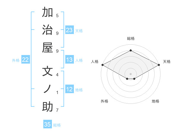 加治屋 文ノ助さんを姓名の画数から五運を鑑定