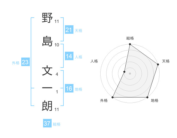 野島 文一朗さんを姓名の画数から五運を鑑定