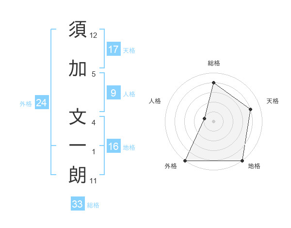須加 文一朗さんを姓名の画数から五運を鑑定