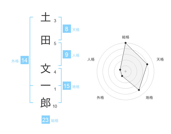 土田 文一郎さんを姓名の画数から五運を鑑定