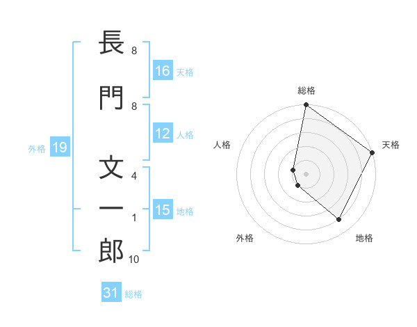 長門 文一郎さんの総格は31画の5点