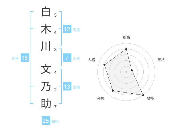 白木川 文乃助さんを姓名の画数から五運を鑑定
