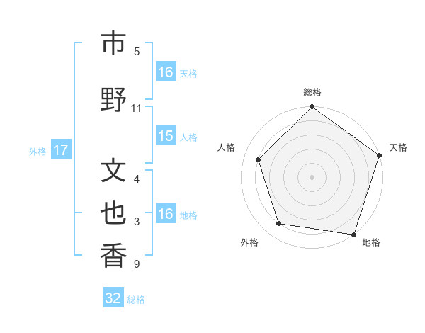 市野 文也香さんの天格は16画の5点!