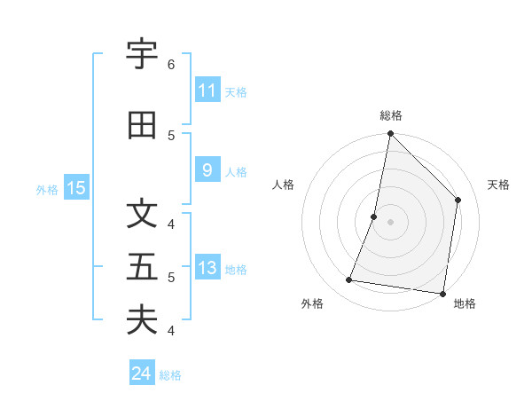 宇田 文五夫さんの総格は24画の5点!