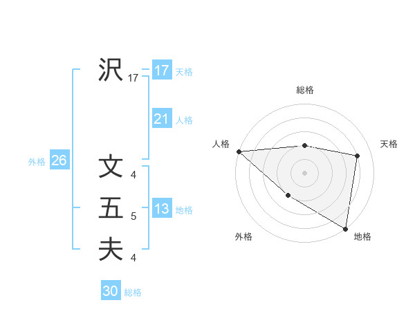 沢 文五夫さんを姓名の画数から五運を鑑定