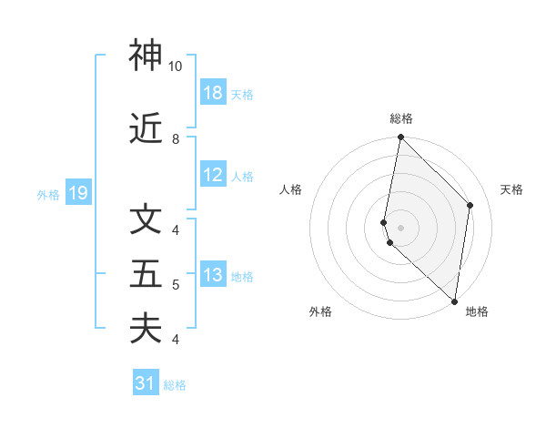 神近 文五夫さんを姓名の画数から五運を鑑定