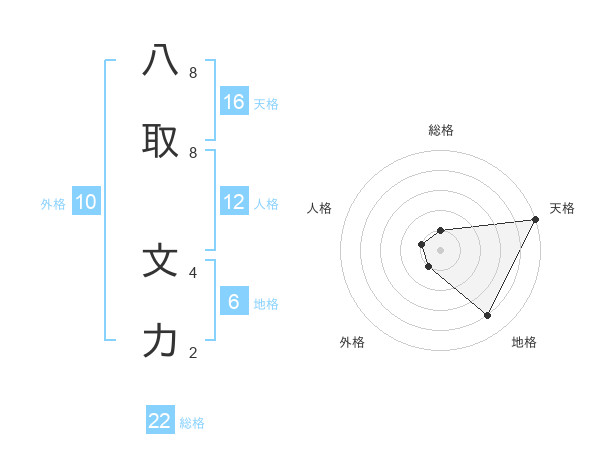 八取 文力さんの総格は22画の1点!