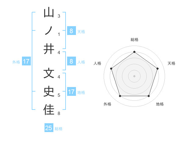 山ノ井 文史佳さんの天格は8画の4点!