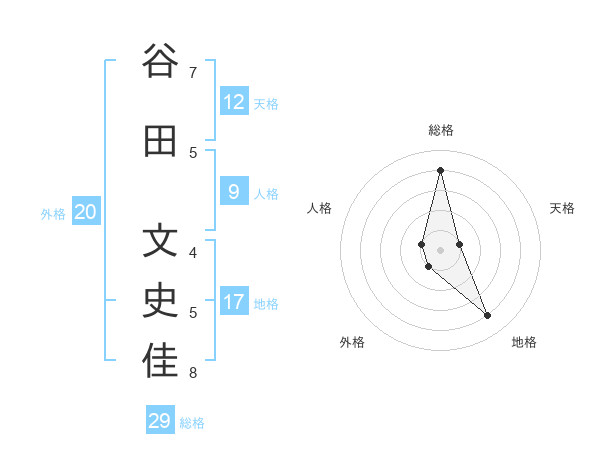 谷田 文史佳さんを姓名の画数から五運を鑑定