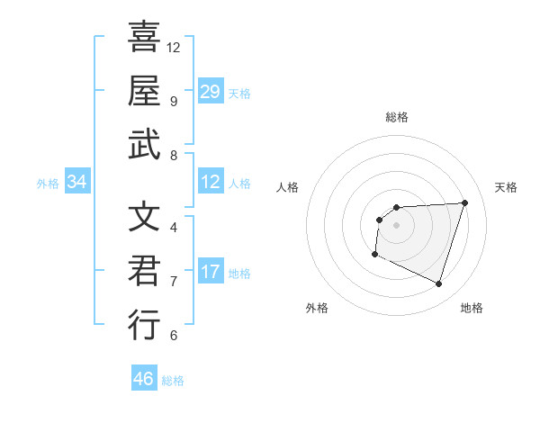喜屋武 文君行さんを姓名の画数から五運を鑑定