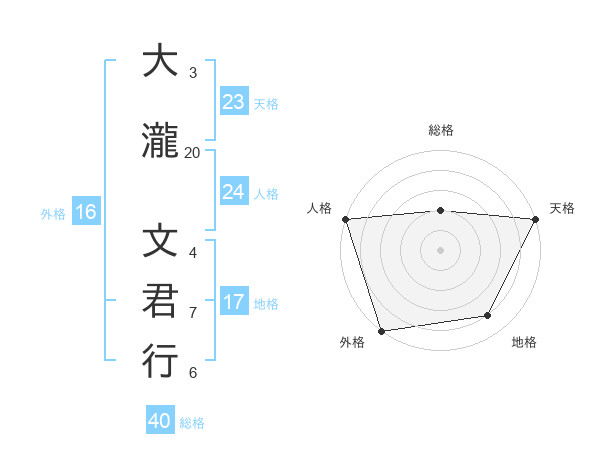 大瀧 文君行さんを姓名の画数から五運を鑑定