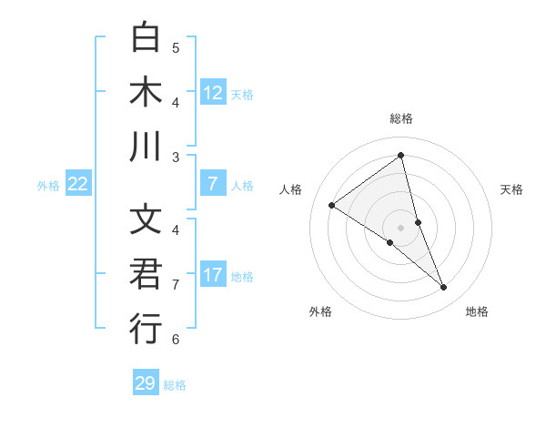 白木川 文君行さんを姓名の画数から五運を鑑定