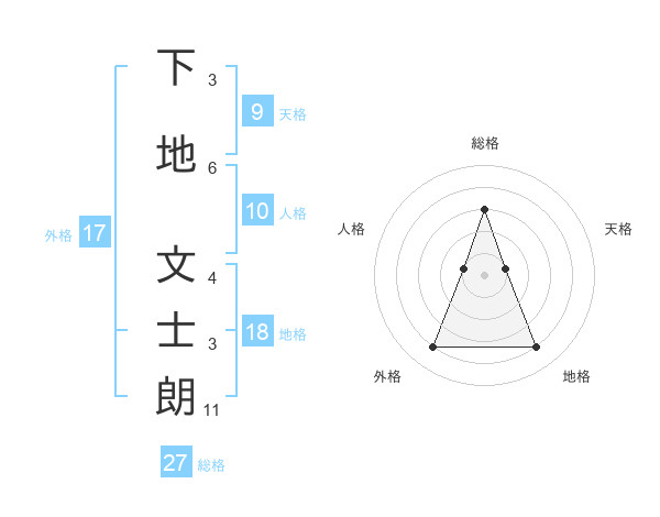 下地 文士朗さんを姓名の画数から五運を鑑定