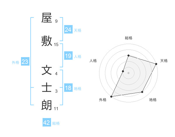 屋敷 文士朗さんを姓名の画数から五運を鑑定