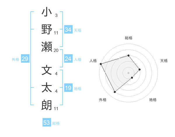 小野瀬 文太朗さんを姓名の画数から五運を鑑定