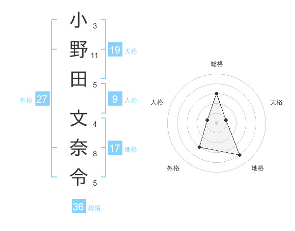 小野田 文奈令さんを姓名の画数から五運を鑑定