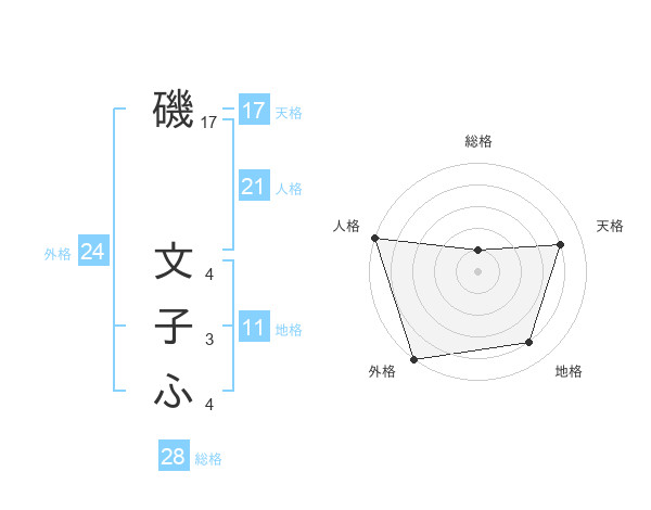 磯 文子ふさんの天格は17画の4点!