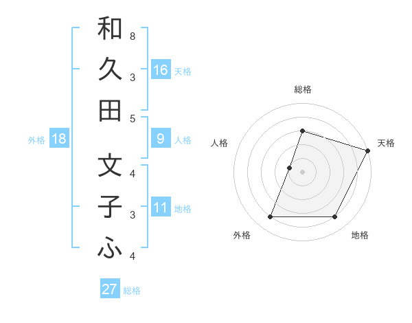 和久田 文子ふさんを姓名の画数から五運を鑑定