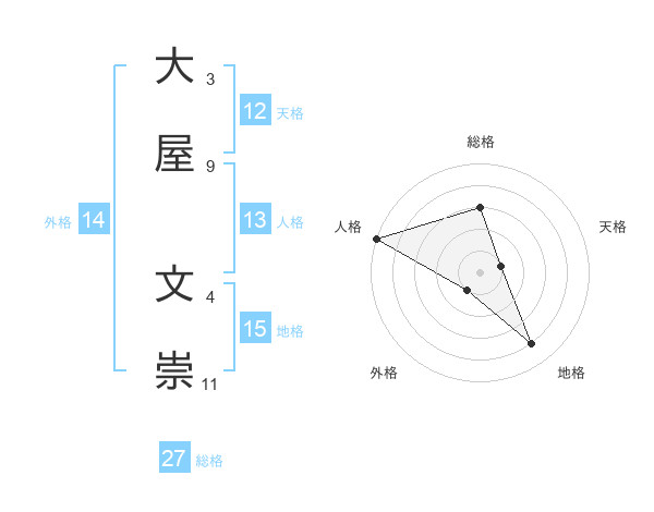 大屋 文崇さんの総格は27画の3点
