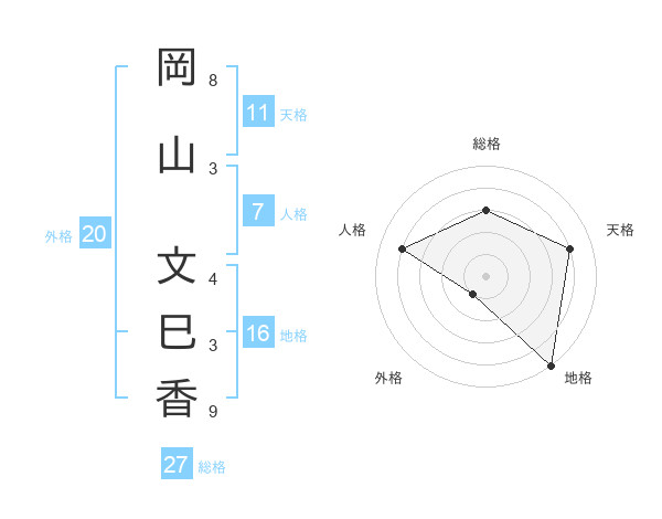 岡山 文巳香さんの総格は27画の3点