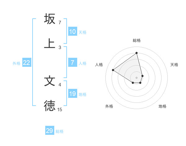 坂上 文徳さんの総格は29画の4点!