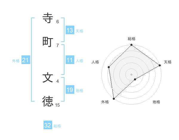 寺町 文徳さんを姓名の画数から五運を鑑定