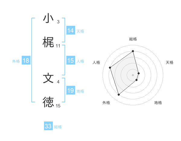 小梶 文徳さんの総格は33画の4点!