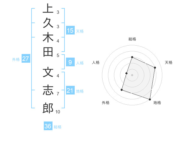上久木田 文志郎さんを姓名の画数から五運を鑑定