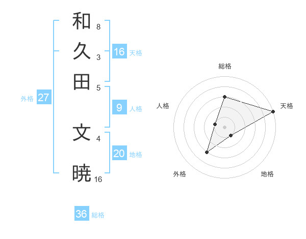 和久田 文暁さんを姓名の画数から五運を鑑定
