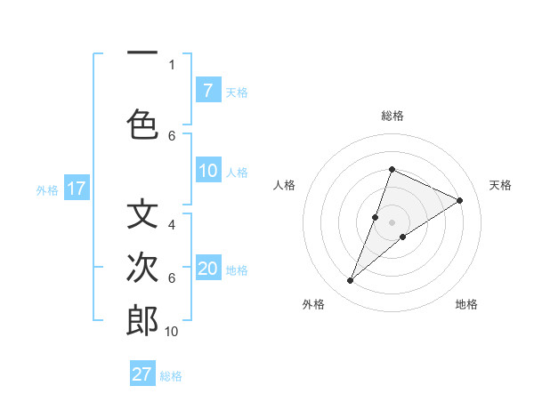 一色 文次郎さんを姓名の画数から五運を鑑定