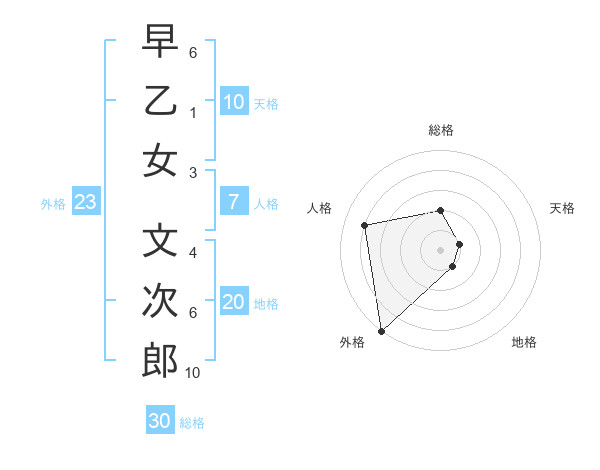 早乙女 文次郎さんを姓名の画数から五運を鑑定