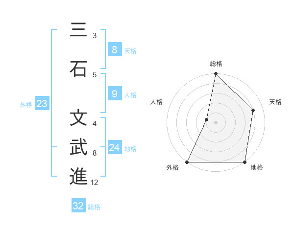 三石 文武進さんの総格は32画の5点!