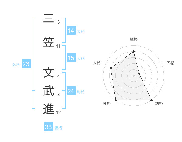 三笠 文武進さんを姓名の画数から五運を鑑定