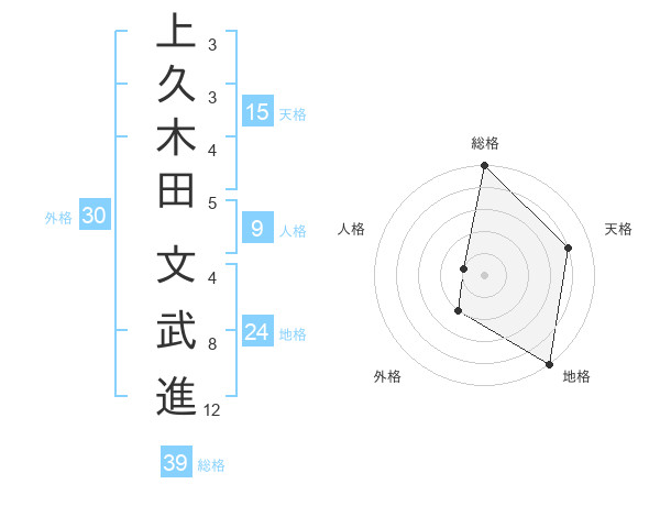 上久木田 文武進さんの総格は39画の5点!