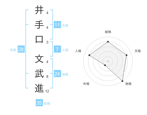 井手口 文武進さんを姓名の画数から五運を鑑定