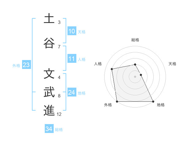 土谷 文武進さんを姓名の画数から五運を鑑定