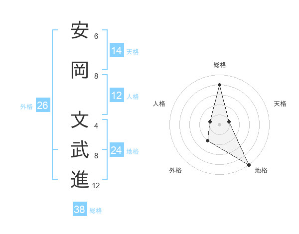 安岡 文武進さんの総格は38画の4点!
