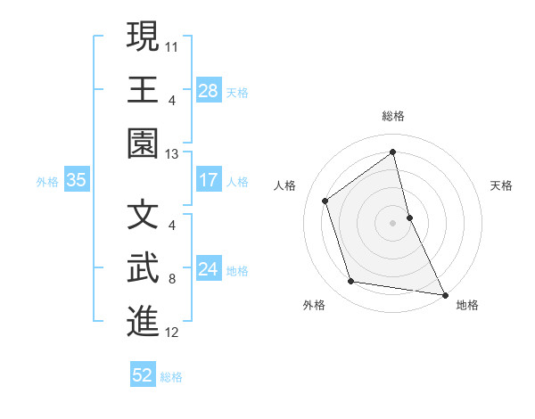 現王園 文武進さんを姓名の画数から五運を鑑定